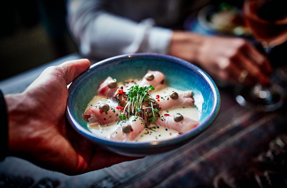 Pikantne ceviche inspirowane peruwiańską w kremowym sosie kokosowym w restauracji Coya w Paryżu.