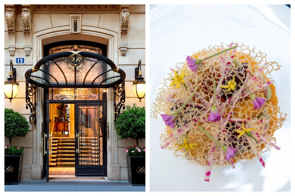 Po lewej, restauracja Les Confidences jest schowana w Hotel San Regis w pobliżu Pól Elizejskich. … Tak, delikatna kuchnia nowego szefa kuchni Romaina Leydiera.